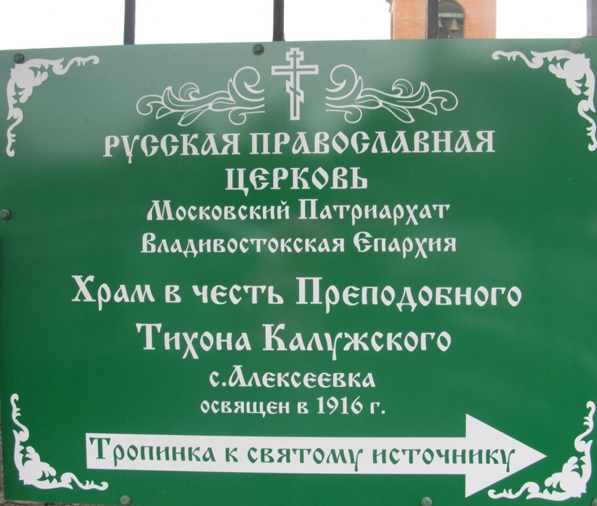 Владивосток - Алексеевка. В Успенском храме Владивостока по благословению настоятеля епископа Иннокентия, викария епархии, продолжается деятельность Епархиальной паломнической службы. Очередная поездка состоялась в Надеждинский район Приморья, в село Алексеевку, где располагается храм в честь святого преподобного Тихона Калужского (Медынского) и известный в Приморье святой источник.
