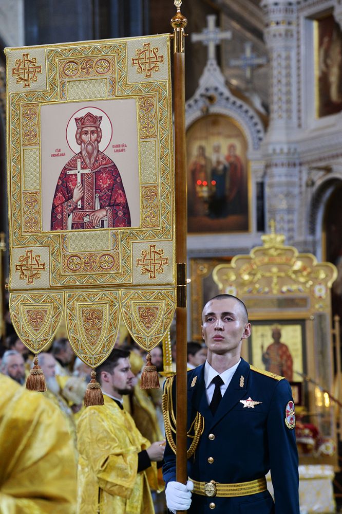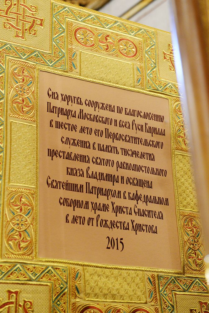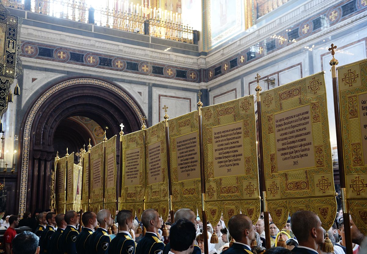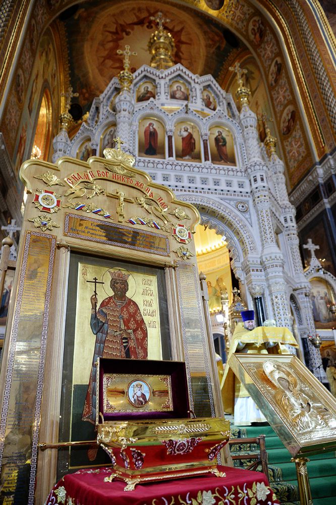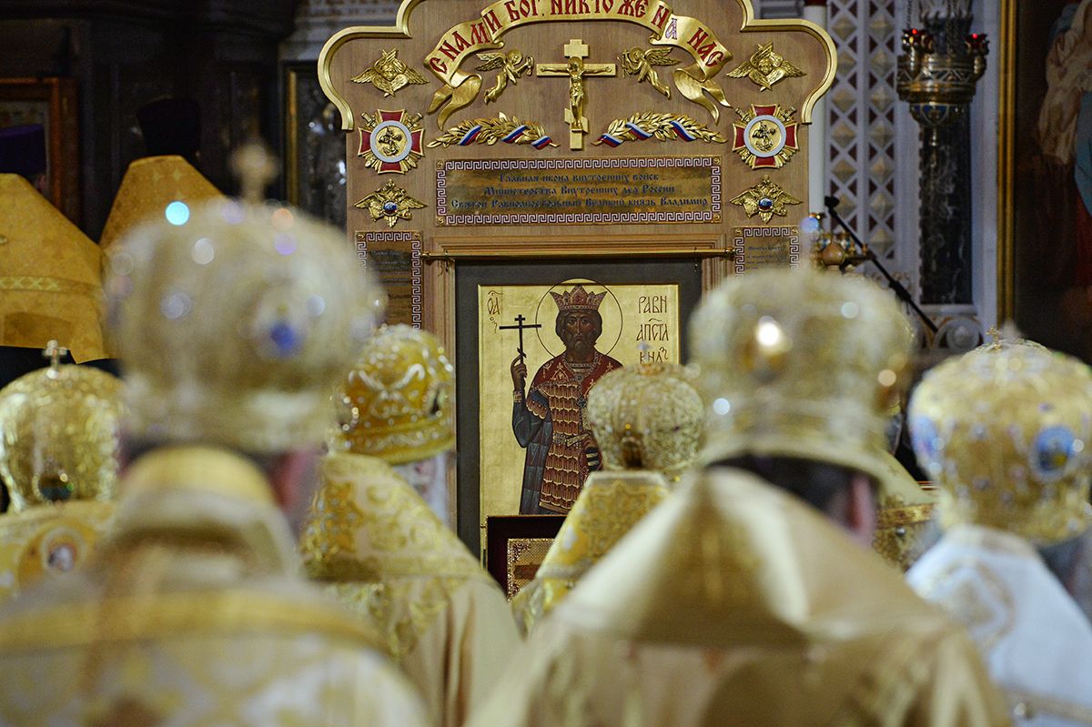Все архиереи Приморской митрополии сослужили 28 июля Святейшему Патриарху Московскому и всея Руси Кириллу за Божественной литургией в Храме Христа Спасителя. В этот день поздравить православных верующих России прибыли представители 15 поместных православных церквей. За богослужением Предстоятель Русской Церкви освятил хоругви с изображением Крестителя Руси, которые будут переданы во все епархии.