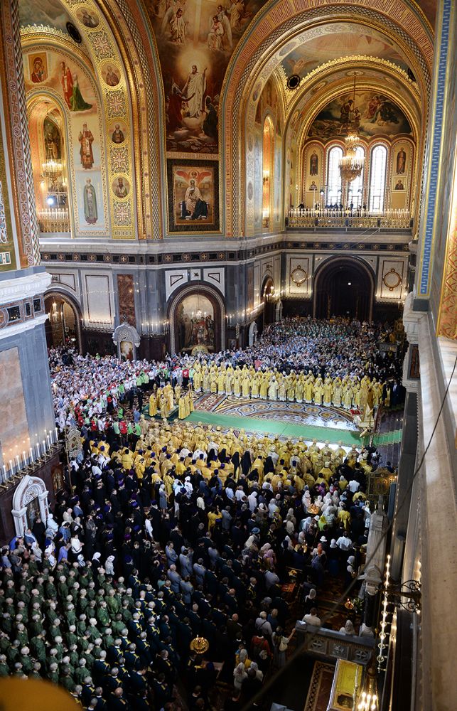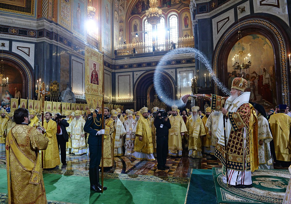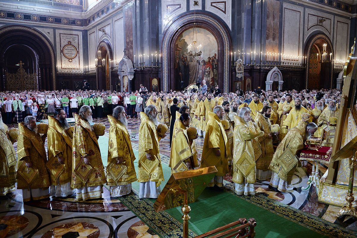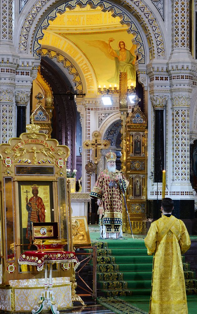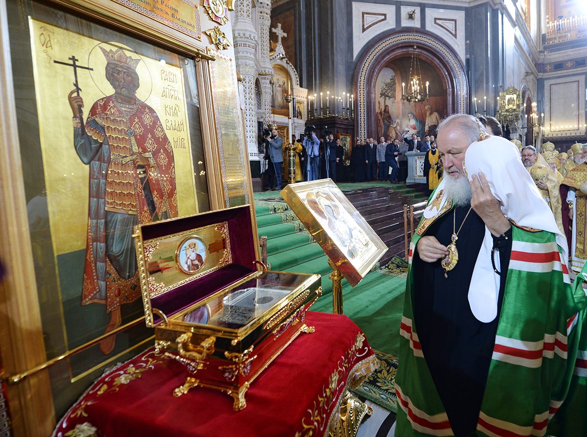 Все архиереи Приморской митрополии сослужили 28 июля Святейшему Патриарху Московскому и всея Руси Кириллу за Божественной литургией в Храме Христа Спасителя. В этот день поздравить православных верующих России прибыли представители 15 поместных православных церквей. За богослужением Предстоятель Русской Церкви освятил хоругви с изображением Крестителя Руси, которые будут переданы во все епархии.