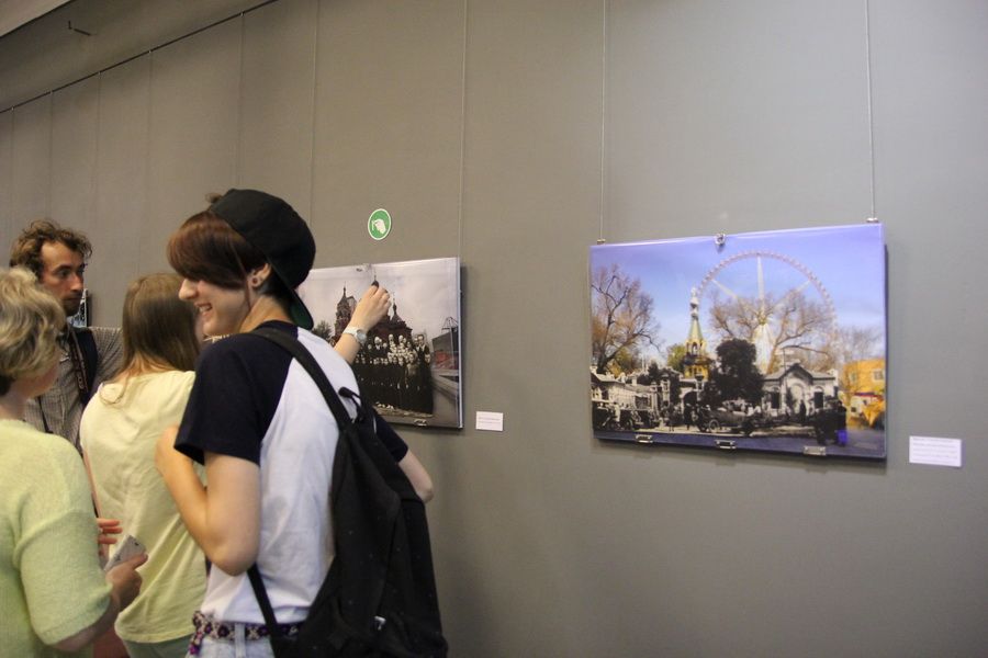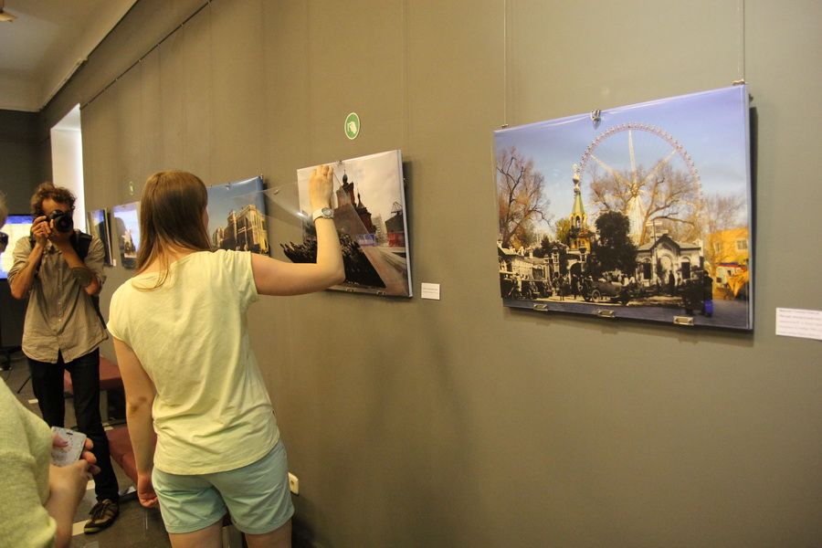 Изучая фотографии таким интересным способом, можно заметить, что некоторые здания остались не тронуты временем, какие-то сейчас находятся в плачевном состоянии. Одна работа отражает и вовсе кардинальное изменение: на месте кладбища и часовни, в которой отпевали усопших, сейчас построен... парк развлечений. Однако на большинстве фотографий меняются лишь отдельные предметы, которыми мы пользовались ранее, на более современные. Вместо телег – машины, вместо земли – асфальт и брусчатка. А город и его атмосфера остались такими же.