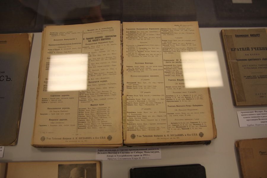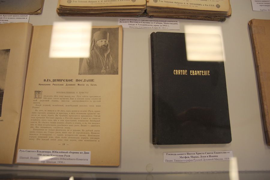 Помимо фотопроекта выставку дополнили исторические харбинские журналы на русском языке, статуэтки и другие тематические объекты. На выставке также представлены предметы из коллекций Приморского государственного музея. Среди них – изделия из фарфора (китайские вазы конца XIX века, тарелка производства кузнецовского завода в Харбине, изготовленная в 1916 году специально для Бригадно-учебного батальона КВЖД), образцы православной литературы харбинских издательств, подборка праздничных номеров журнала «Рубеж», старинные пресс-папье в виде драконов, изготовленные в Харбине в 1912 году.