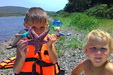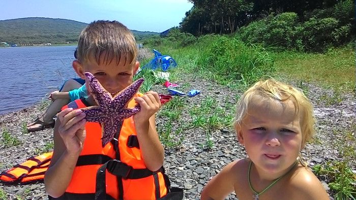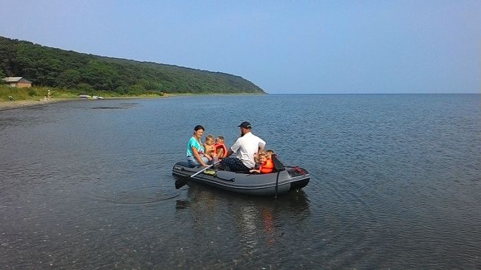 В безветренную погоду семьи имели возможность прокатиться по живописным бухтам острова на резиновой лодке. Лодка закуплена по гранту, а мотор любезно предоставила семья Бочкарниковых.
