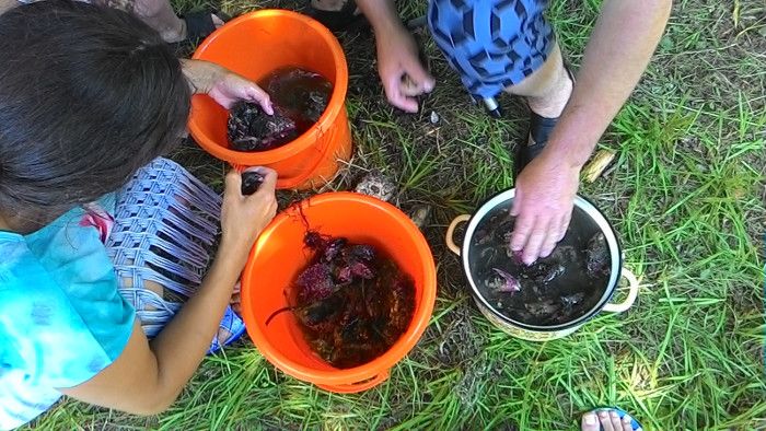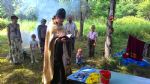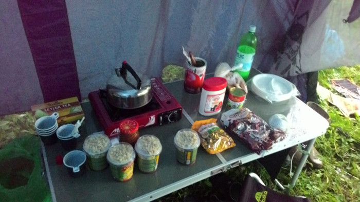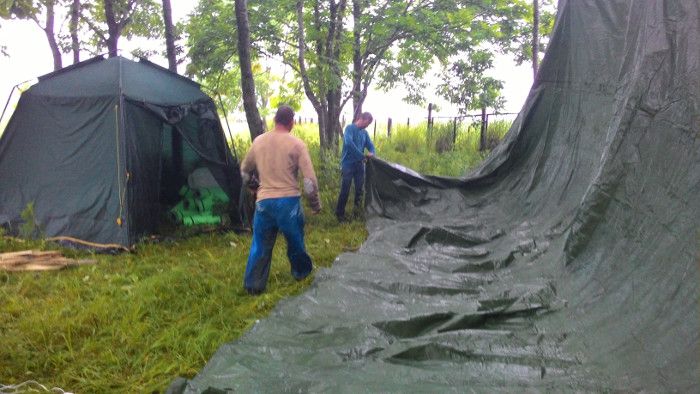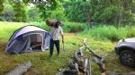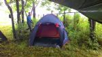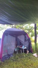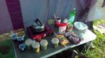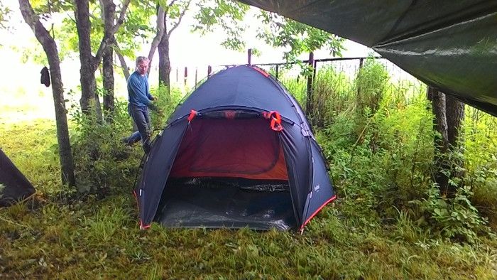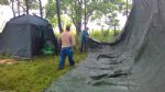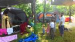 Лагерь разбили в лесу. Установили 6 палаток 3-7 местных, два тента под кухню и склад, вырыли туалет. Недалеко от лагеря находится источник с чистой водой. И совсем недалеко идти до моря.