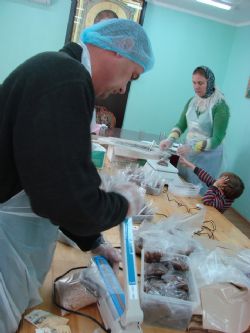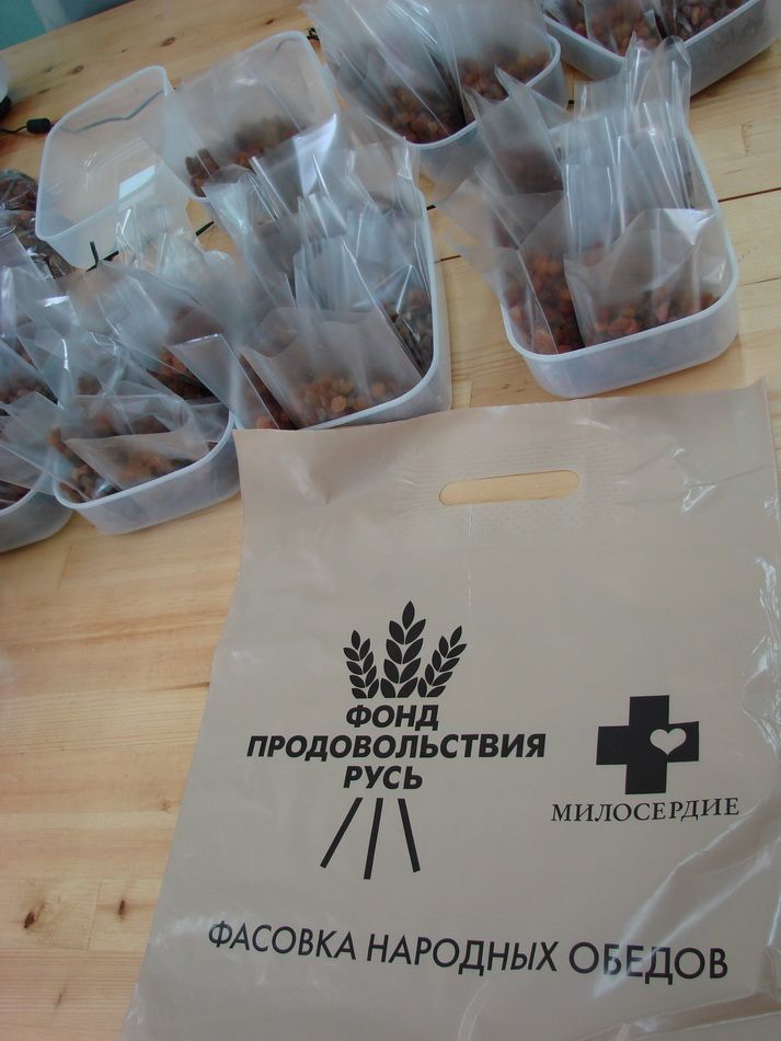 - Наш отдел по церковной благотворительности и социальному служению Владивостокской епархии с ноября 2014 года является частью всероссийского проекта «Народный обед». Фонд продовольствия закупает продукты в многокилограммовых упаковках у отечественных производителей по минимальной цене на пожертвования. Далее на местах продукты фасуют порционно, упаковывают и раздают нуждающимся.