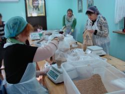Владивосток. 16 октября 2015 года в трапезной Покровского кафедрального собора , добровольцы службы "Милосердие" присоединились к Всероссийской акции фасовки народных обедов. Акция приурочена к празднованию Всемирного дня продовольствия, организатором которого в России стал благотворительный "Фонд продовольствия «Русь».