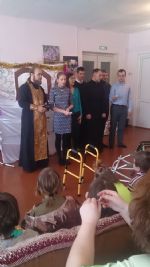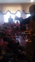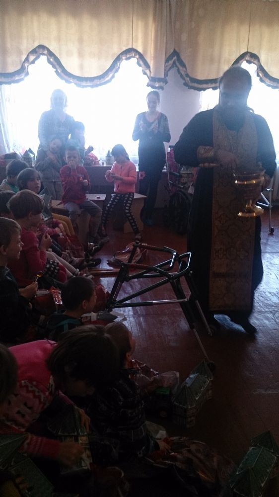 о. Андрей рассказал о празднике Рождества, о том, кто такой святитель Николай Чудотворец. В общем, встреча получилась познавательной и интересной, в конце всем детям вручили не просто сладкие подарки, а очень необходимые им гигиенические наборы (шампуни, душистое мыло и прочее).