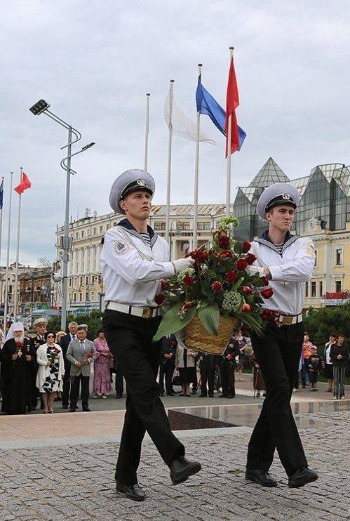 Вместе с главой города Игорем Сергеевичем Пушкаревым владыка Вениамин принял участие в церемонии возложения цветов к памятнику основателю поста Владивосток генерал-губернатору Восточной Сибири Н.Н.Муравьёву-Амурскому и посетил другие памятные места. В официальную делегацию также вошли: вице-губернатор Приморского края Александр Ролик, председатель Думы города Елена Новицкая, почетные жители Владивостока, ветераны, представители общественности.