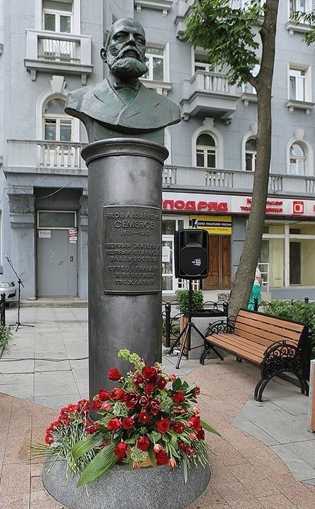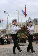Также праздничная делегация возложила цветы к памятнику первому общественному старосте Владивостока Я.Л.Семёнову, к стеле «Владивосток-город воинской славы».