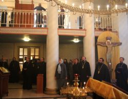 За Литургией причастилось всё духовенство и значительная часть светских участников конференции. После небольшого перерыва на завтрак, в Духовно-просветительском центре Казанского храма началось первое пленарное заседание.