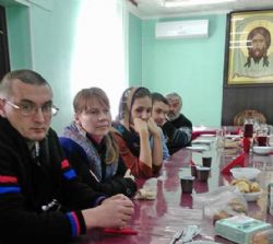 Накануне они посетили Детскую больницу в районе Змеинки, где находятся дети, от которых отказались родители. Детки совсем маленькие, всех одеть, вывести-вынести на прогулку, поиграть с ними – требует большого труда. Вечером в трапезной Покровского кафедрального собора собрались добровольцы Службы " Милосердие ", чтобы обсудить текущую работу.