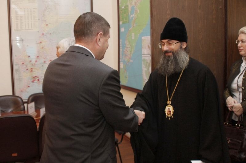 Среди членов общественного совета в зале заседаний находился викарий Владивостокской епархии епископ Уссурийский Иннокентий: