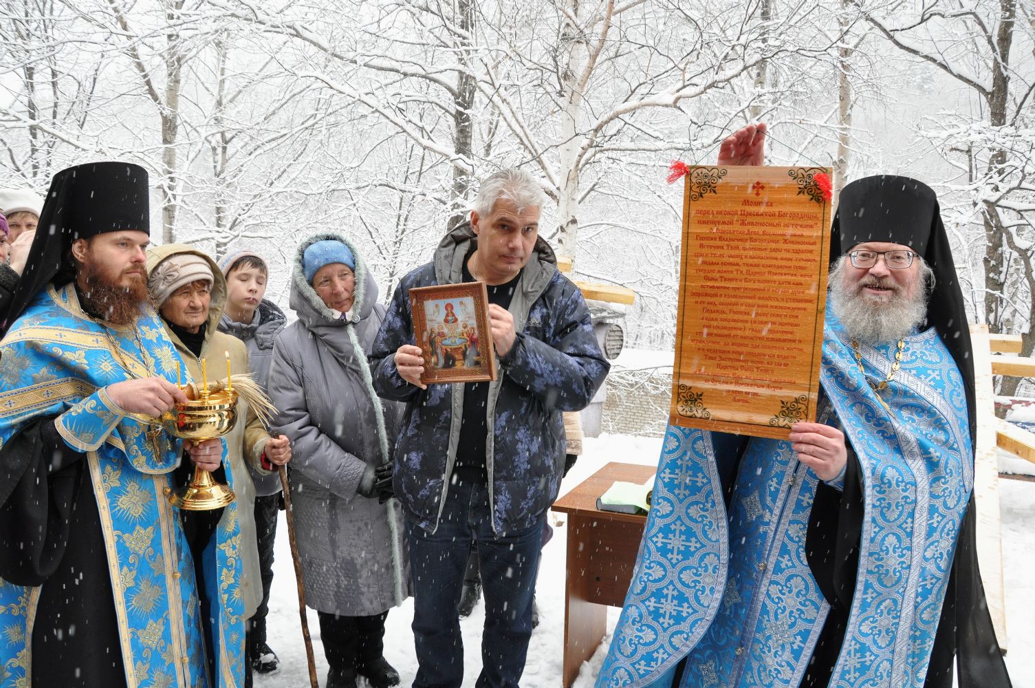 Другой Поклонный крест будет установлен на въезде в само село Чистоводное. В дар о таком важном событии иеромонах Адриан вручил А.А.Сальникову – икону Божией Матери «Живоносный Источник» и молитву.
