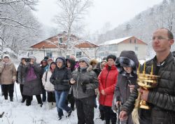 По совершении молебного пения участники события – в их числе сотрудники и пациенты водолечебницы, прихожане Преображенского и Лазовского храмов – прошли Крестным ходом к радоновому источнику, над которым затем был установлен один из Поклонных крестов.