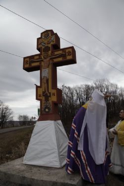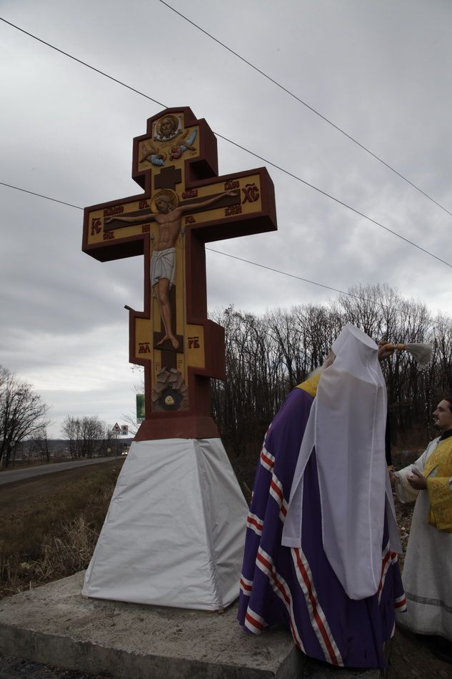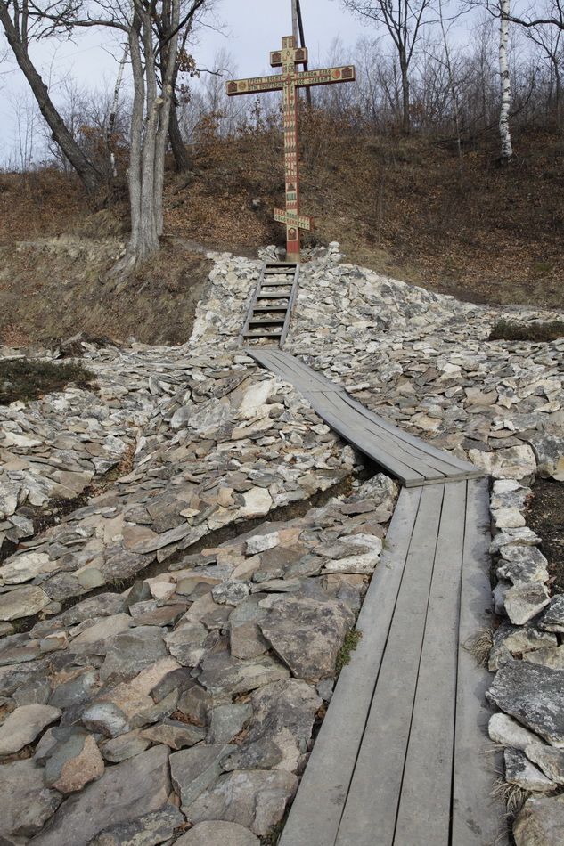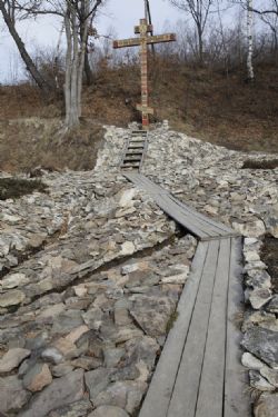 Далее миссионерская экспедиция посетила Благодатный источник на окраине Кавалерово, у сопки Солдатской. Арсеньевской епархией здесь планируется создание Музея православной культуры под открытым небом. Не так давно владыка Гурий освятил установленный у источника 6-метровый резной Поклонный Крест, сработанный по образцу знаменитого Мезенского креста местным умельцем Андреем из Яковлевского района.