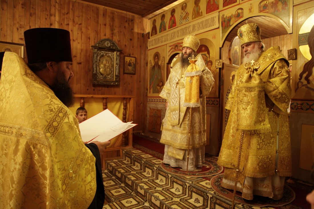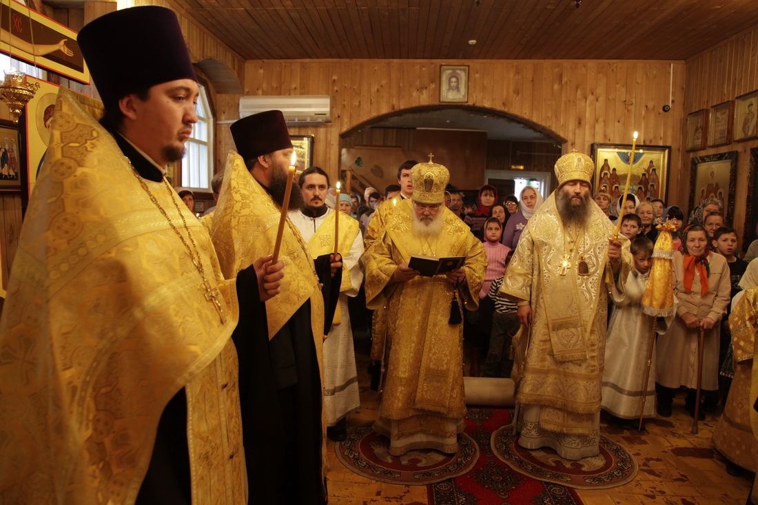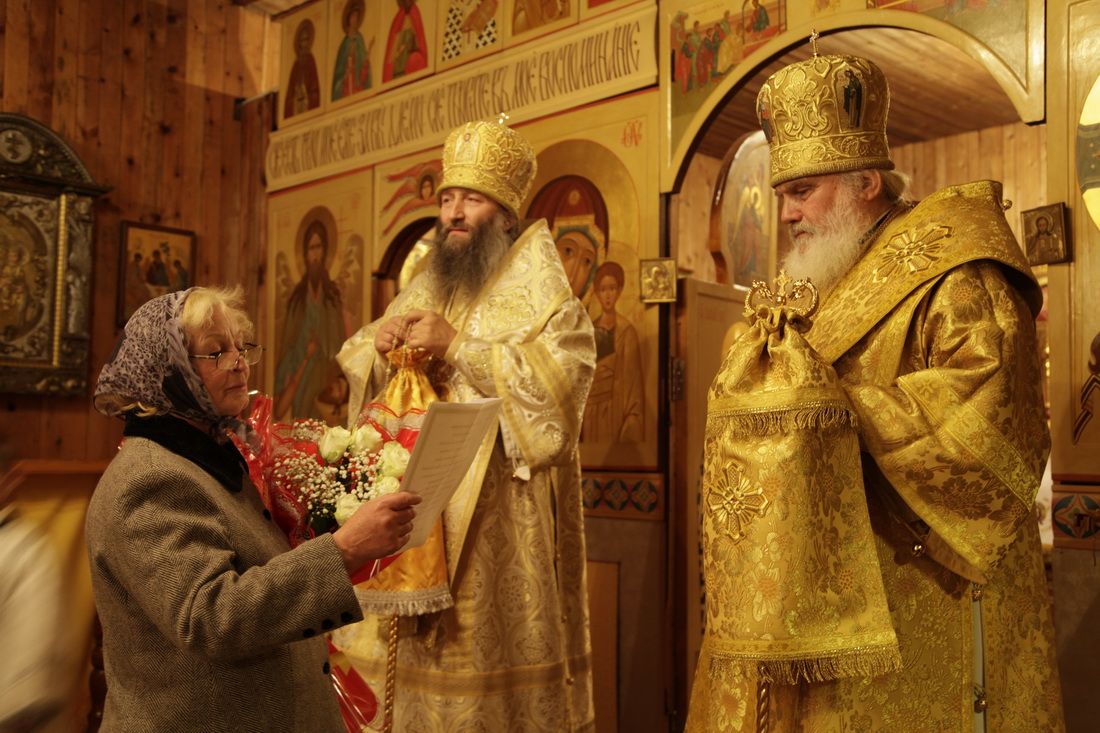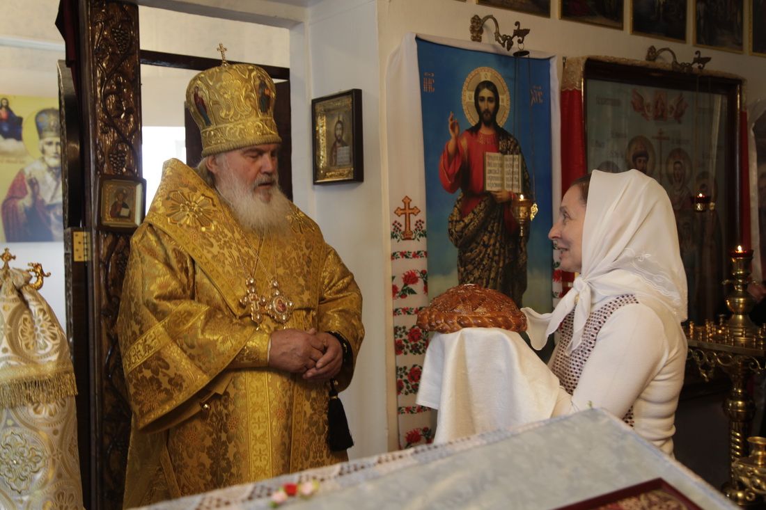 Его Преосвященство владыка Гурий в своей пастырской речи, по традиции напомнил жителям посёлка его историю, начавшуюся с маленькой деревушки Филаретовки, основанной в начале прошлого века и населённой преимущественно староверами, поглощённую в 20-е годы нарождающимся посёлком. Храма здесь не было, но в этих же местах были поселения с чудными христианскими названиями Воскресенка и Иерусалимовка, посёлок Духово, Духовские озёра…