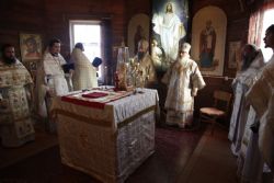 В этот же день митрополит Вениамин посетил посёлок Каменку Дальнегорского района, где в августе этого года епископ Гурий освятил новый, чудный деревянный храм в честь Святителя Николая Чудотворца, выстроенный у побережья залива Опричник.