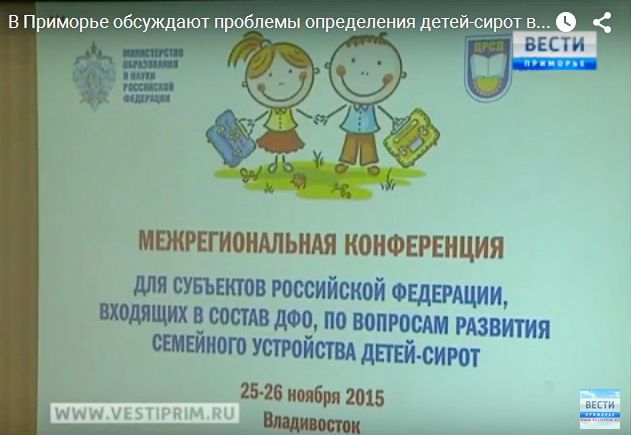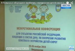 Владивосток. 25 ноября 2015 года. Более двухсот представителей органов системы профилактики собрались со всего Дальнего Востока, чтобы обсудить вопросы развития семейного устройства детей-сирот. Конференция была организована Министерством образования и науки РФ и Департаментом образования и науки Приморского края. Участники из разных регионов страны познакомились с опытом реализации в Приморье программ, направленных на определение детей-сирот в семьи. В течение двух дней в рамках форума прошли круглые столы и дискуссии о том, как помочь ребятам, оставшимся без попечения родителей.