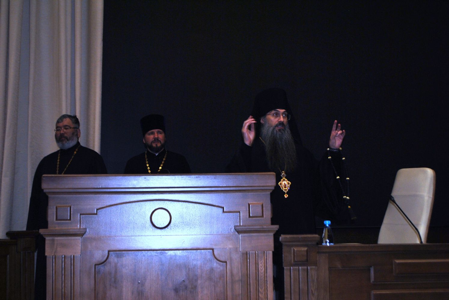 Владыка Иннокентий был приглашен за стол президиума и обратился с приветственным словом к казакам, благословив Казачий круг на работу.
