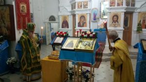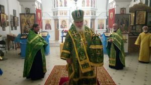 Его высокопреосвященству сослужили протоиерей Александр Талько и духовенство монастыря.