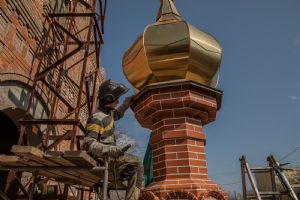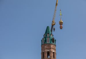 К празднику Пасхи закончены работы по установке купола на монастырскую колокольню