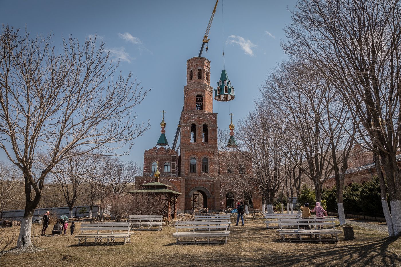 Владивосток. 16 апреля, в Великий Четверг, в Свято-Серафимовском мужском монастыре установлен центральный шатёр и купол с крестом на строящуюся монастырскую колокольню. Ранее на Лазареву субботу производилась сборка семиметрового подкупольного шатра на земле.
