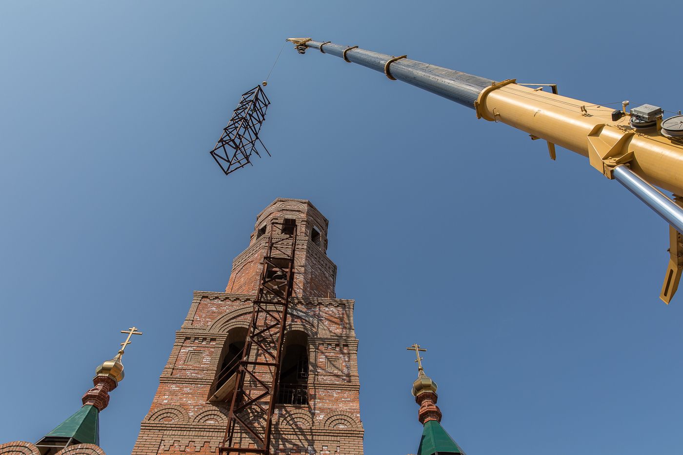 «Сегодня в монастыре долгожданное событие - установка шатра и купола на колокольню. Планировалось совершить это раньше, но по различным причинам, в том числе и независящим от нас, это совершается сегодня - в Великий Четверг. Для монтажа конструкции нам пришлось искать кран с длиной стрелы не менее 55-ти метров. Высота центрального шатра колокольни - семь метров. Высота купола с крестом и подкупольным барабаном - шесть метров. Точка монтажа конструкции - 28,5 метра. Общая высота колокольни составляет 41,5 метра. В верхней точке креста находится молниеприёмник, от которого идёт стальная полоса по фасаду здания до контура заземления. Работы по монтажу системы молниезащиты на фасаде колокольни выполнены на шестой седмице Великого поста. С установкой главного шатра мы, можно сказать, почти заканчиваем основной объём внешних работ по строительству колокольни. Пусть эта оптимистичная новость станет приятным исключением в ряду неутешительных известий, которые получают православные сегодня, в связи с недопущением соборных храмовых служб. Всем желаем пасхальной радости и внутреннего пребывания со Христом воскресшим и воскрешающим нас!»