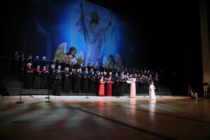 Владивосток. 19 апреля 2023 года на Приморской сцене Мариинского театра состоялся Большой Пасхальный концерт сводного хора Владивостокской епархии, сводного хора воскресных школ Владивостокской епархии, образцового хора «Мальчиши» г. Владивостока, оркестра, хора и солистов театра.
