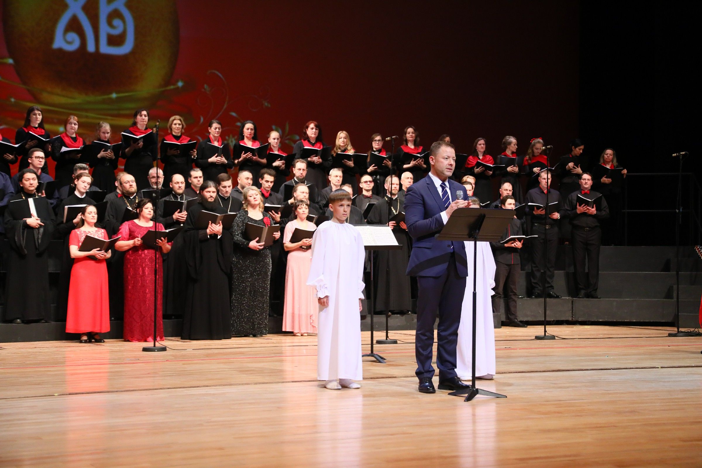 В первом отделении концерта духовные песнопения исполнил сводный хор Владивостокской епархии и сводный хор воскресных школ Владивостокской епархии. Дирижеры: диакон Адриан Чунчук, Мария Чижевич, Ольга Григорьева, Екатерина Мельникова и Екатерина Бабина. Образцовый хор «Мальчиши» исполнил произведение Валерия Гаврилина «Мама» (сл. А. Шульгиной).