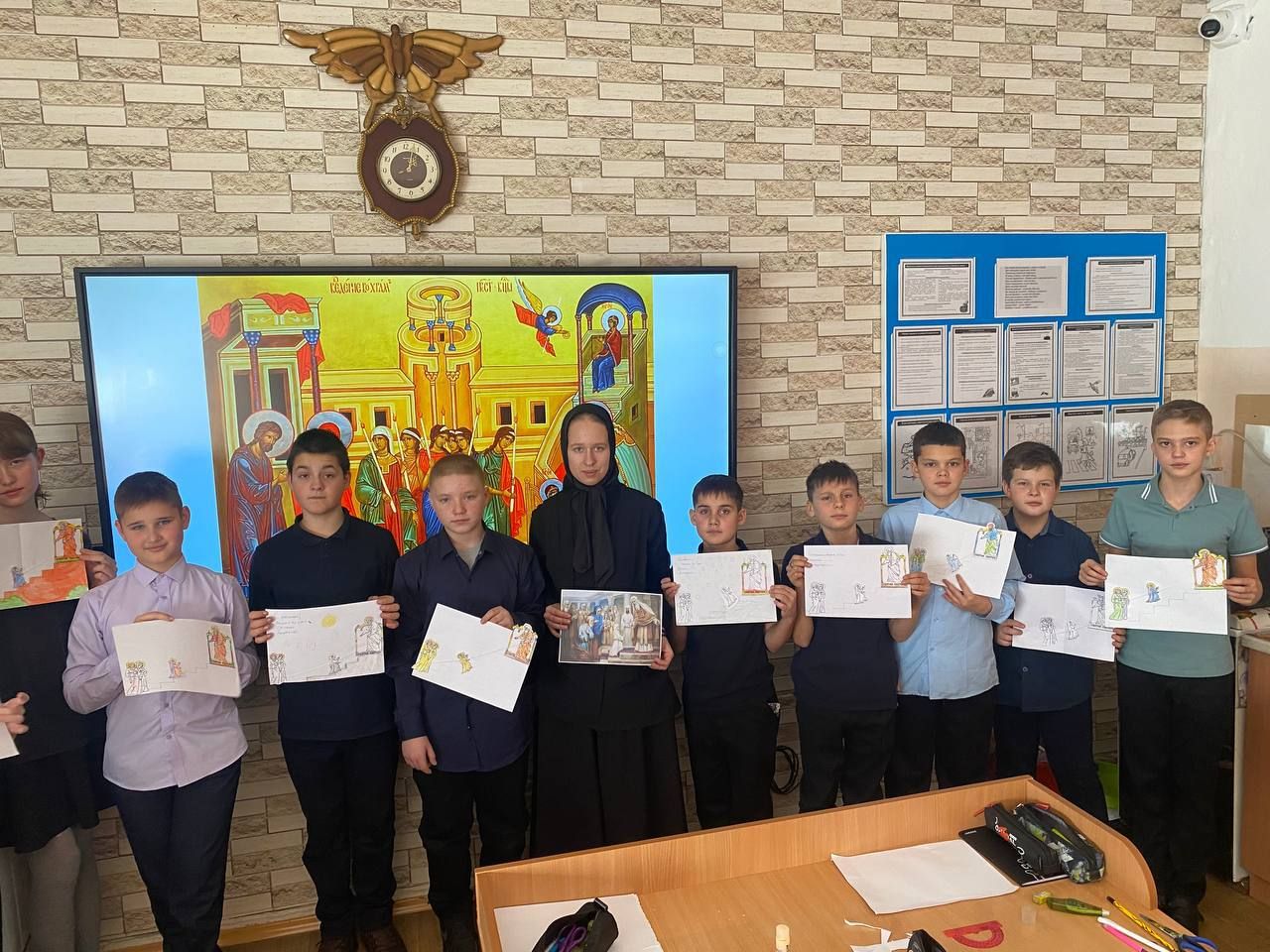 Сестра Дария рассказала ребятам историю праздника и его значение. После дети своими руками сделали открытки для своих близких, чтобы поздравить их со светлым православным торжеством.