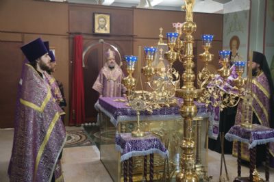 Его Преосвященству сослужили: иерей Андрей Калнин; иерей Виталий Шаркеев; иерей Андрей Попов; иеромонах Ермоген (Крещенко) и иерей Илия Гречишников.