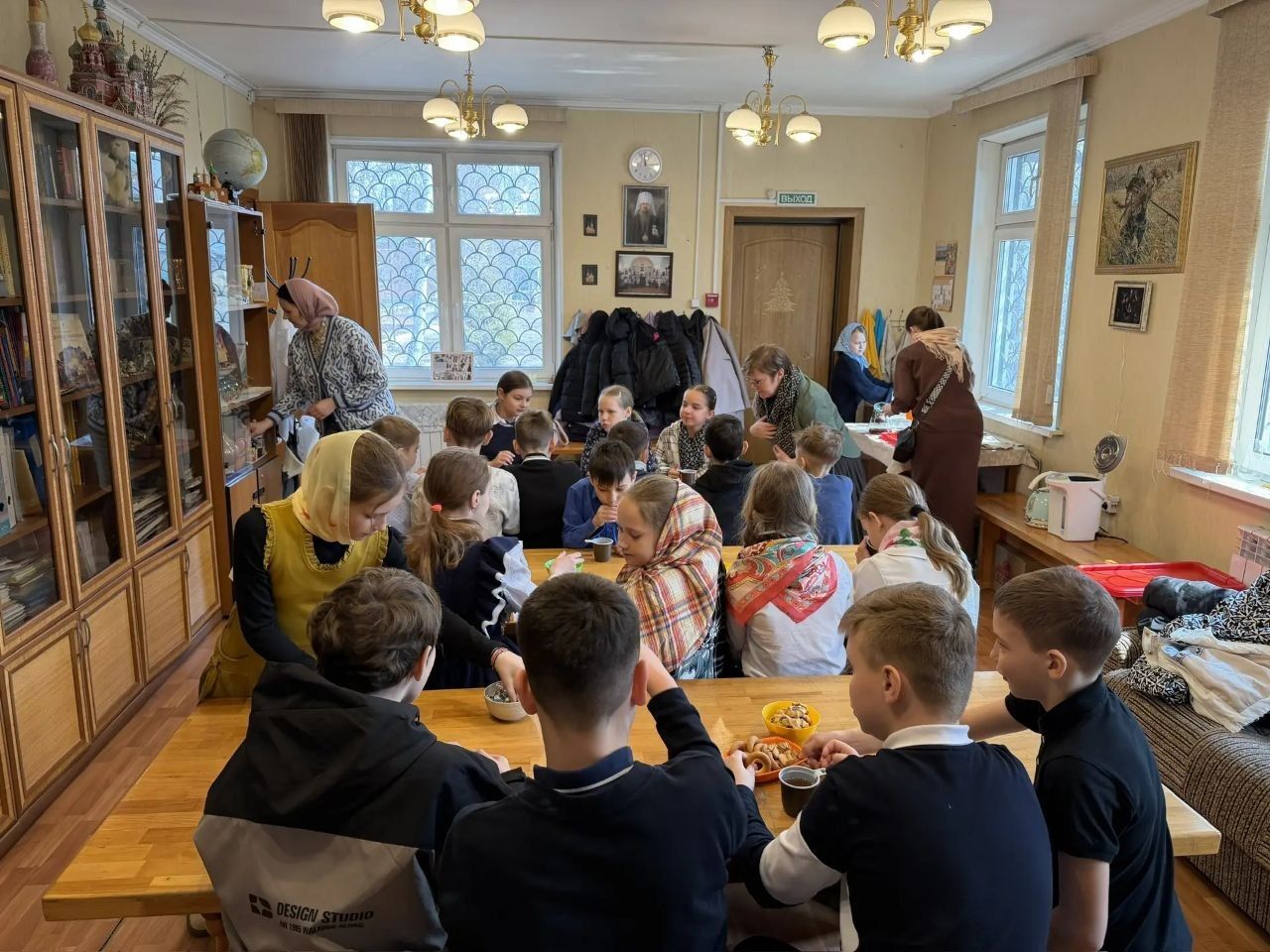 Затем состоялось чаепитие, после которого ребята прогулялись по территории храма, посетили спортивную площадку, где продемонстрировали свои спортивные навыки, и даже собрали шишки в небольшом лесу рядом с храмом.