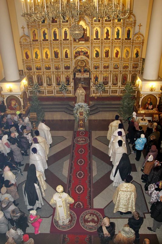 Вечером, после торжеств на центральной площади Владивостока, митрополит Владивостокский и Приморский Вениамин и викарий епархии епископ Уссурийский Иннокентий возглавили в Покровском кафедральном соборе Великую Рождественскую вечерню.
