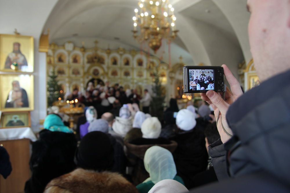 Концерт продлился около часа. В исполнении Хора Успенского храма (регент Юлия Лосева) прозвучали такие известные духовные сочинения как «Тебе поем» (композитор С.Рахманинов); «Предначинательный псалом» (композитор А.Третьяков); «Блажен муж» (композитор А.Архангельский) и др. Завершилось выступление исполнением Рождественских колядок в переработке игумена Феофана (Зиборова).