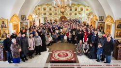По окончании литургии настоятель поздравил клириков и прихожан храма с юбилеем. Старейшим и заслуженным из них были благословенные грамоты. Для всех собравшихся в этот день в храме было приготовлено праздничное угощение.