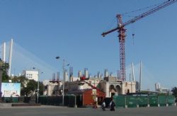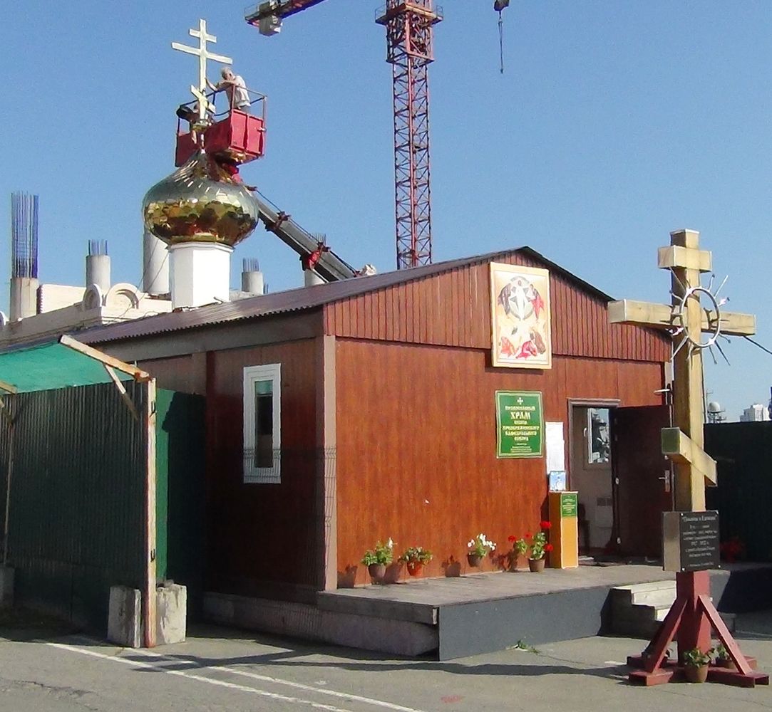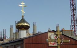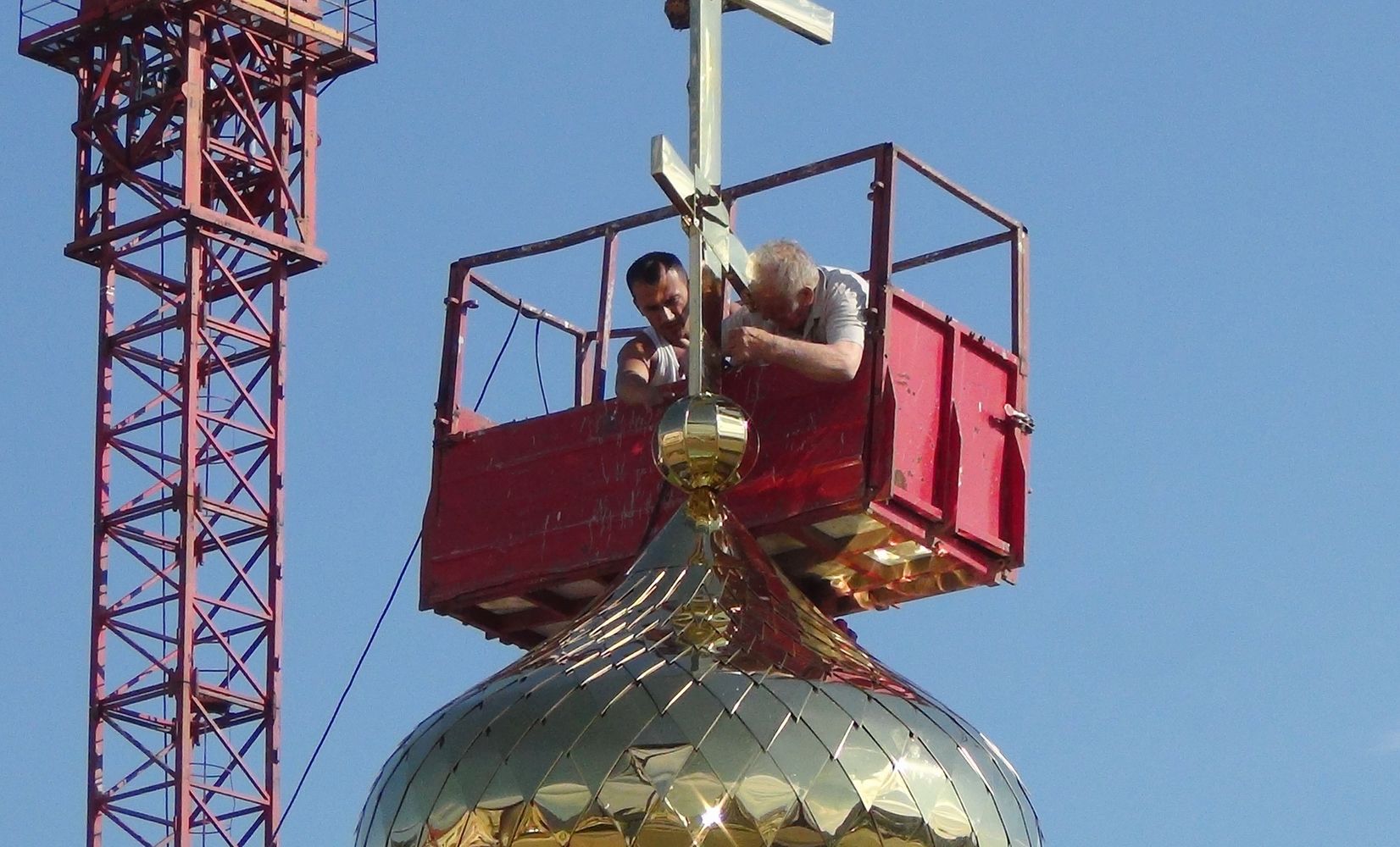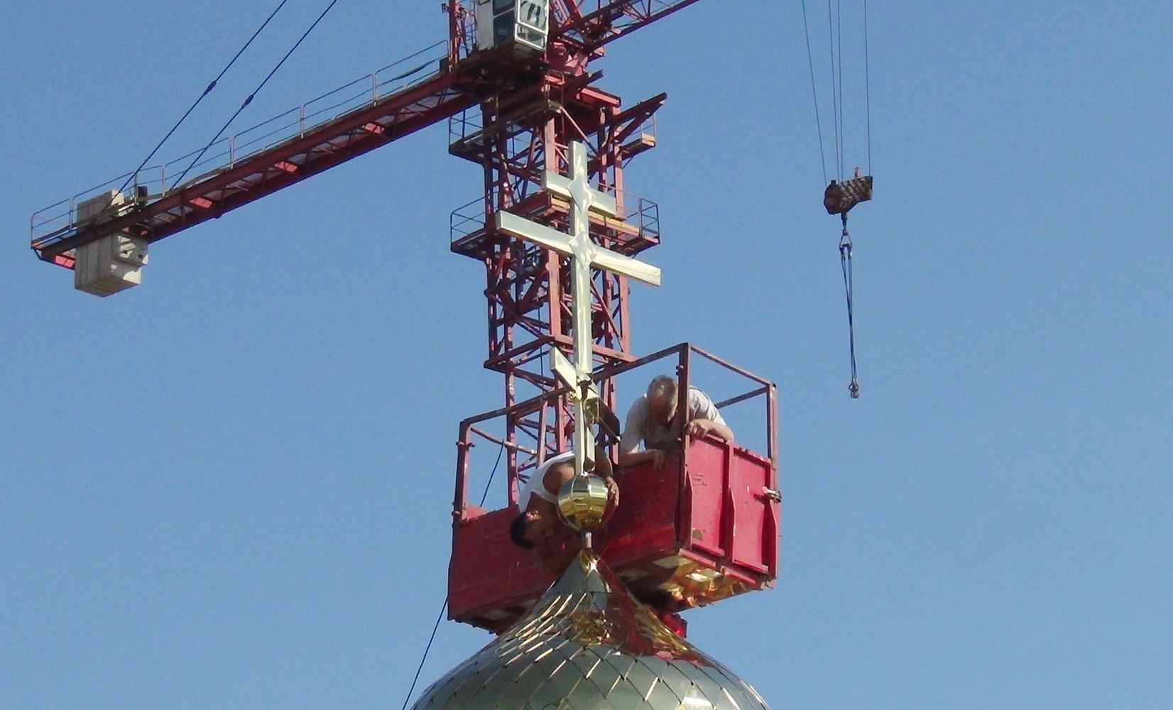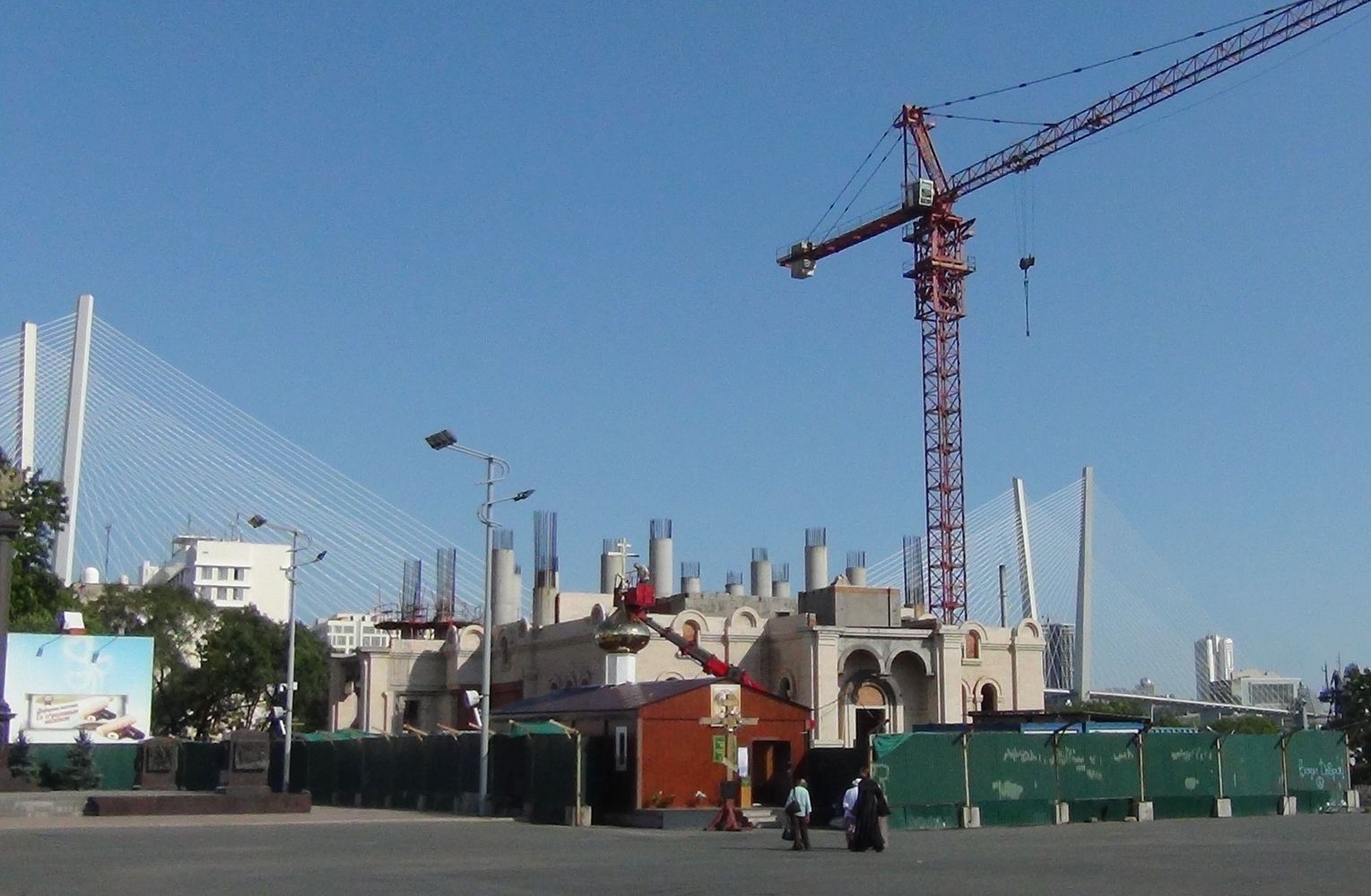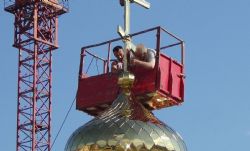 Владивосток. Работы по установке креста на купол временного храма Спасо-Преображенского кафедрального собора прошли 22 августа 2016 года.
