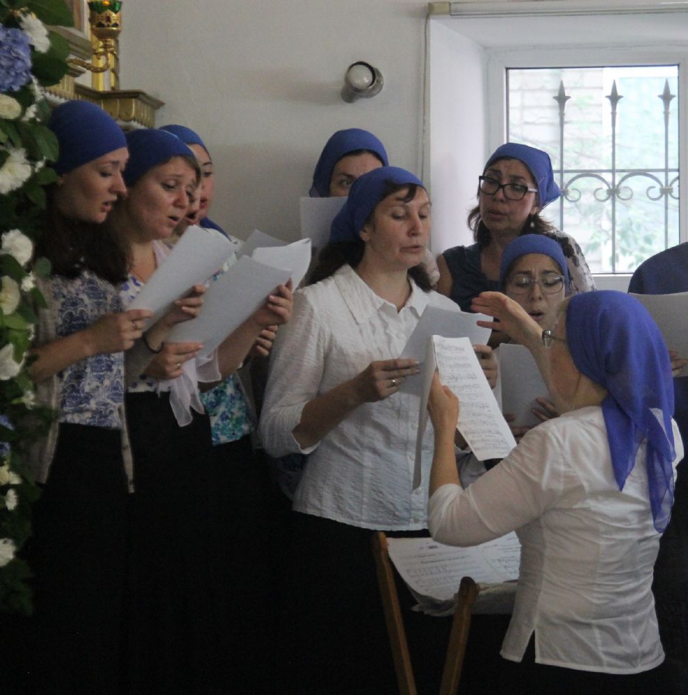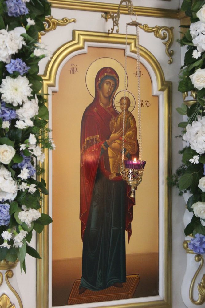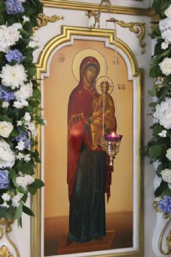 Также, в память о Святом Предании, — гласящем, что Архангел Гавриил принес Божией Матери цветок из райского сада, когда сообщал весть о скором Ее успении, — Успенский храм был украшен цветами, их композиции составляли профессиональные флористы.