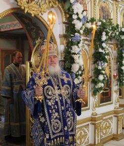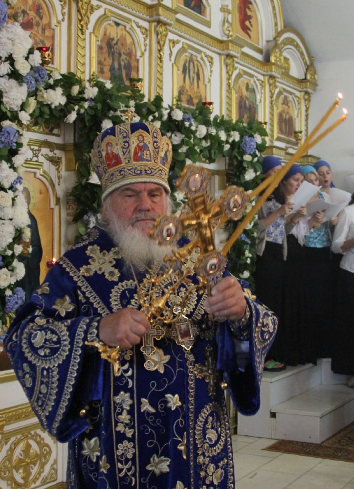 По совершении богослужения владыка Вениамин поздравил владыку Иннокентия с престольным праздником и обратился к пастве с Архипастырским словом: