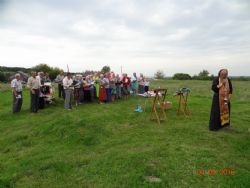 На месте разрушенного храма отслужили молебен с акафистом Порт-Артурской иконе Божией Матери, в соединении с молебном о благословении Божьего творения (который служится в первое воскресенье сентября). Далее на могиле отслужили литию о упокоении.