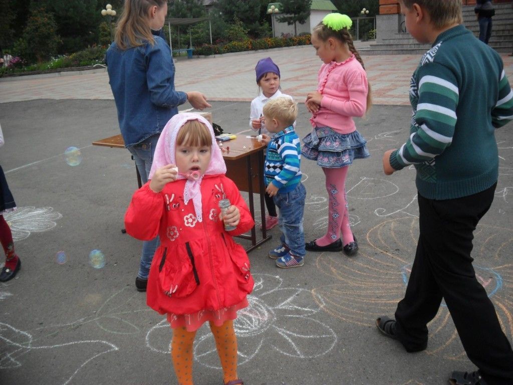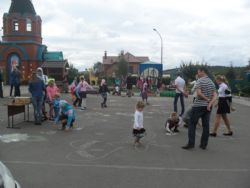 Волонтёр храма Дарья Бобнева провела для детей игровую программу, в которую вошли: рисунок на асфальте, мыльные пузыри, классики.