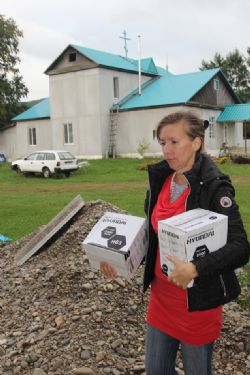 Сопровождала гуманитарный груз к месту назначения помощник руководителя соцотдела епархии Инна Николаевна Чистякова: