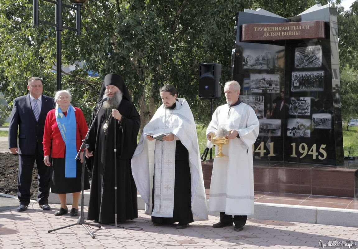 Слова признательности собравшимся на церемонию открытия ветеранам — труженикам предприятий, детям войны сказал епископ Арсеньевский и Дальнегорский Гурий. Владыка освятил памятник и поздравил горожан.