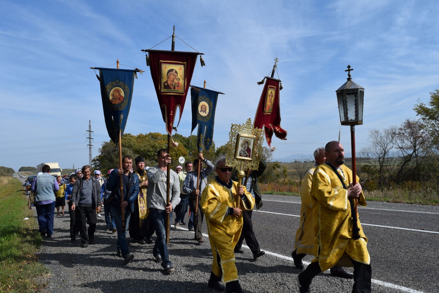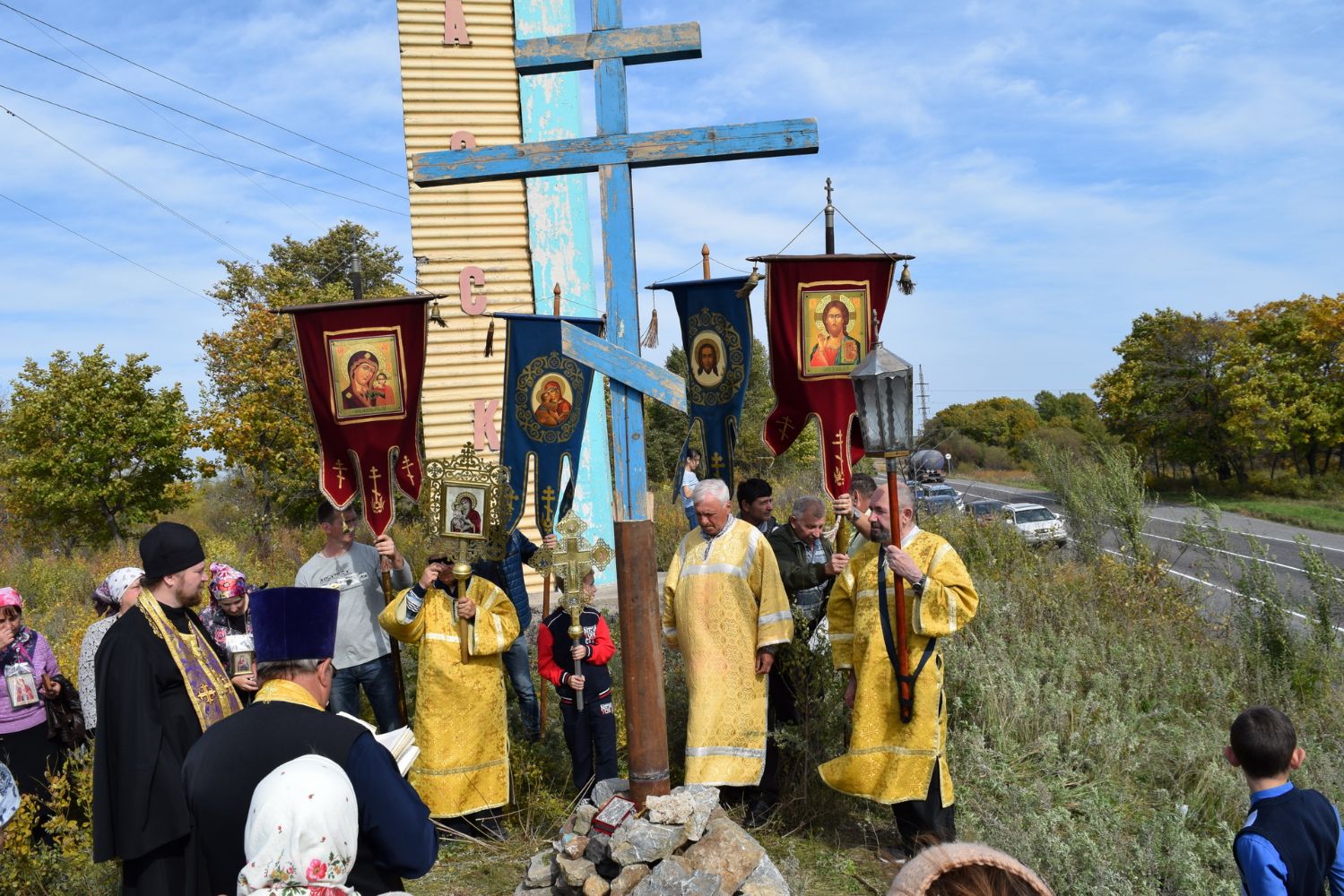 Спасск-Дальний. По благословению благочинного VI благочиния Владивостокской епархии, настоятеля храма Вознесения Господня с. Спасское митрофорного протоиерея Владимира Капитанюка в субботу, 2 октября 2016 года, приходы двух храмов, сельского и городского – храма Преображения Господня, совершили традиционный Крестный ход вокруг города Спасск-Дальний. Два крестных хода вышли навстречу друг другу и встретились на въезде в город у поклонного Креста.