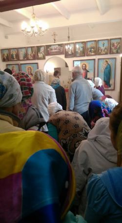 Ещё один раз в месяц, по средам, священник служит Божественную литургию. Приезда священника очень ждут, готовятся к участию в Таинствах. Наш маленький храм всегда переполнен.