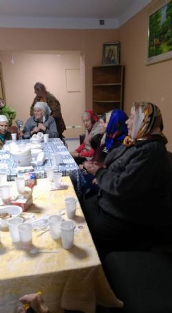 После литургии для проживающих в интернате добровольцы организовали чаепитие со свежей выпечкой. Каждому приготовили небольшой подарочек.