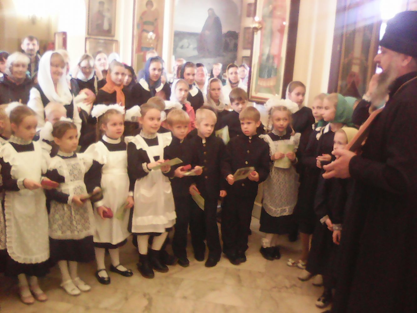 День начался Божественной Литургией в в гимназическом храме святых равноапостольных Кирилла и Мефодия. По окончании настоятель храма и духовник гимназии протоиерей Игорь Талько отслужил молебен небесному покровителю вновь образованной общины — святому преподобному Серафиму Саровскому чудотворцу, испросив у него заступничества перед Богом и помощи в нелёгком деле обучения.