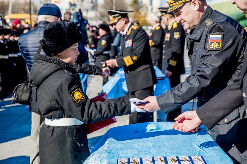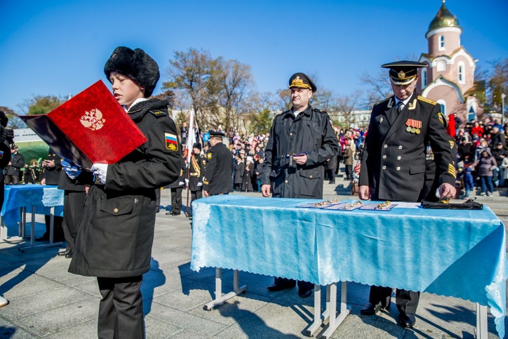Далее 80 кадетов Владивостокского Нахимовского Президентского училища торжественно приняли присягу.