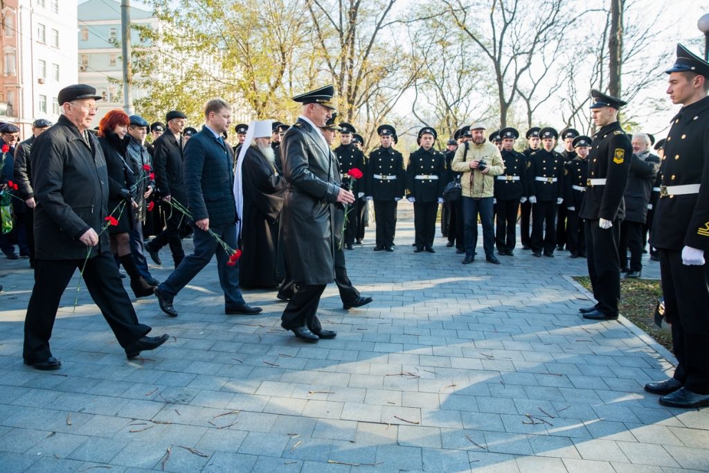 Торжества начались благодарственным молебном в храме в честь святого Андрея Первозванного на Корабельной набережной. На памятных мероприятиях Высокопреосвященнейшего владыку сопровождал помощник командующего ТОФ по работе с верующим личным составом, настоятель Андреевского храма иерей Сергий Галанов.