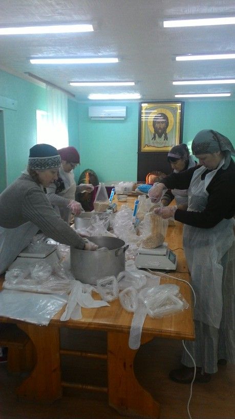 Владивосток. После длительного перерыва возобновилась фасовка "народных обедов". Собрано 290 наборов. Состав набора: гречневая крупа, макароны, геркулес, тушенка, масло, чай.