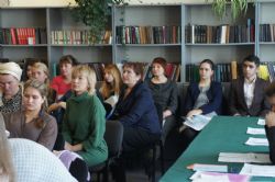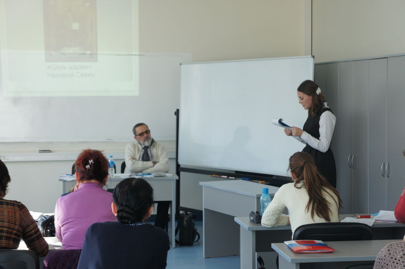 По сложившейся традиции, программа конференции предполагала обмен методическим опытом среди педагогов. Учитель русского языка и литературы МБОУ СОШ № 1 г. Большой Камень Н.Г. Коваленко рассказала о своём опыте духовно-нравственного воспитания на занятиях факультатива по литературе. Заместитель директора Центра детского творчества г. Большой Камень Н.П. Беляева провела мастер-класс на тему «Примеры парадоксальных и дискуссионных заданий в ходе интеллектуально-исследовательской игры “Незнакомая, но родная”». Силами преподавателей и студентов кафедры теологии и религиоведения ДВФУ была подготовлена выставка книжных новинок, адресованная учителям ОРКСЭ.