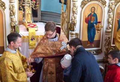 Отец настоятель открыл киот иконы и помазал всех благодатным маслом и мирром.
